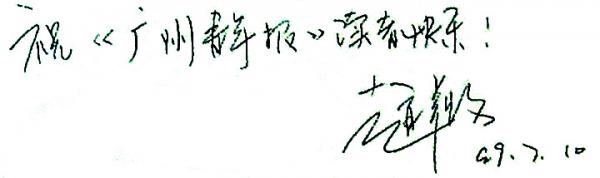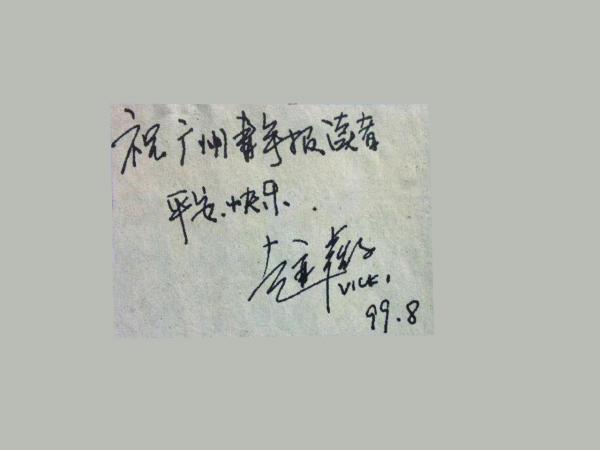 第二次,是同年的8月28日采访赵薇的。这次,赵薇来到广州,我与她见面时,她的衣着依然保持上次见面时的红格子特色:红色格子衬衫、蓝色牛仔裤。我直接问她为什么又穿红格子。她大方直率地回答“喜欢红格子,所以多买了几件”。采访过程中,她没有耍大牌、摆架子,脸上写满纯真和笑容。在她两次为广州青年报读者的题字里都有一个热词:“快乐”。