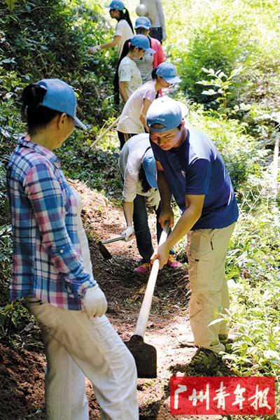 7月31日,记者与学生志愿者们踩着苏洋及其队友所铺设的竹道上山,夏令营副营长陈志强告诉记者,接下来几期的营员将负责中段及山顶段的生态布道工作,难度和强度将更大。当一行人跋山涉水登上海拔1100米的桠髻钵山山顶时,都感慨一汪东江水的来之不易,才真正体会“饮水思源”的深刻意义。