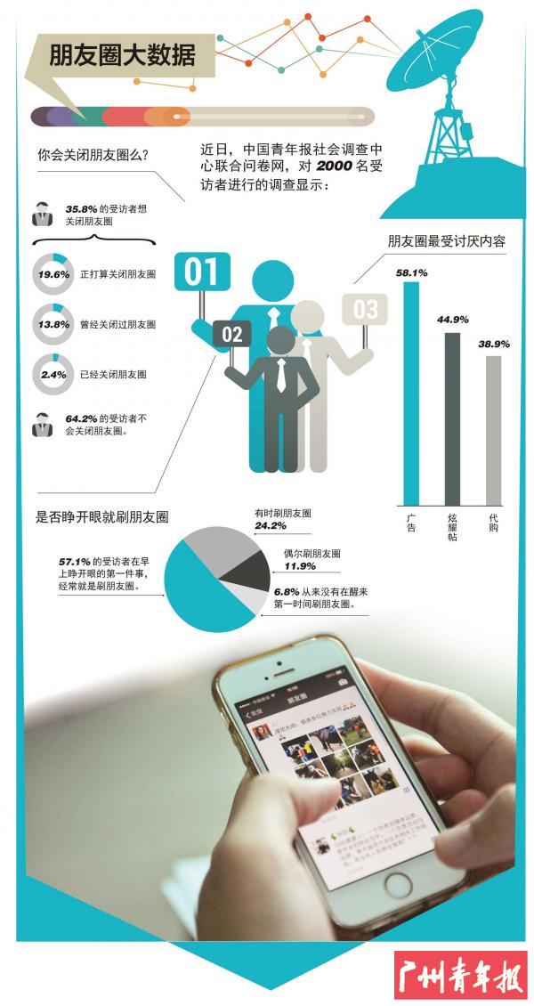 有没有那么一瞬间,你想关闭朋友圈?事实上,已经有不少人这样做了。近日,中国青年报社会调查中心联合问卷网,对2000名受访者进行的调查显示,35.8%的受访者想关闭朋友圈,13.8%的受访者曾经关闭过朋友圈,2.4%的受访者已经关闭朋友圈。