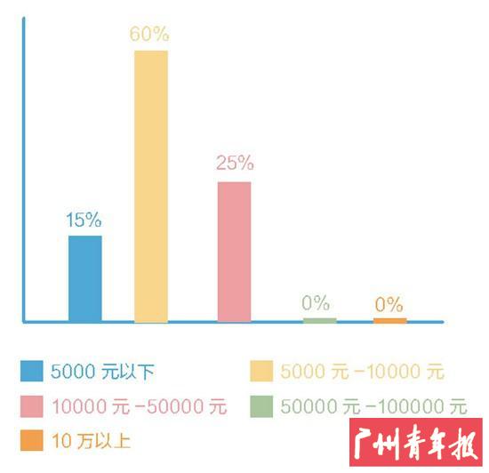 除了师弟师妹经济,还有不少人选择投资的方式来赚钱,17.24%的人表示会买点股票、基金之类的,而且这当中大部分都不是小打小闹,投入都比较大,60%在5000元到10000元,25%在10000元到50000元之间,只有15%的是在5000元以下。