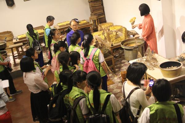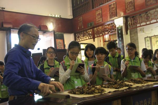 小记者们跟随着馆长的脚步参观了整个展馆。在吴馆长的介绍下,小伙伴们了解到关于陈李济的一些故事和它的制造流程,比如中药制药的四道工序 ( 蒸、炒、炙、煅 );一些常见药材的用法;陈李济镇店之宝——百年陈皮;中药的八大剂型 ( 膏、丹、丸、茶、散、曲、酒、锭 );陈李济诚信立业的故事……其中最值得提的是陈李济发明的蜡丸。