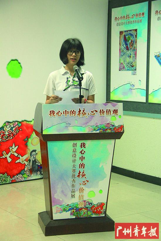 9月1日,由广州市教育局主办的“我心中的核心价值观”创意设计大赛优秀作品展在广州市美术中学拉开帷幕。当天上午,广州市文明办、广州市教育局、各区教育局等有关部门领导以及各校师生代表百余人参加了活动,共同进行生动活泼且富有意义的“开学第一课”——如何创意表达“核心价值观”。