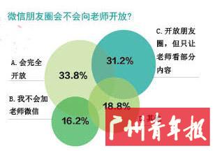 从该项调查中,我们可以发现,学生与老师之间的亲密度还是很高的:超3成同学愿意向老师完全开放微信朋友圈。而有部分内容不让老师看,不少同学表示是因为“吐槽”或保持一定的距离。