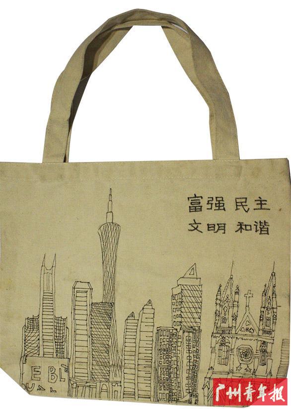 广州科贸职业学院的李老师观看了同学们的创意作品后,表示“很惊讶”:“想不到孩子们这么富有想象力,比如他们制作的手绘袋既宣传了‘富强、民主、文明、和谐’的核心价值观,同时把实用环保与艺术性相结合。还有‘创意文化衫’的设计,一套12件,启发我们也可以DIY,在日常或校运会上穿着。”