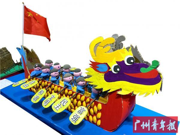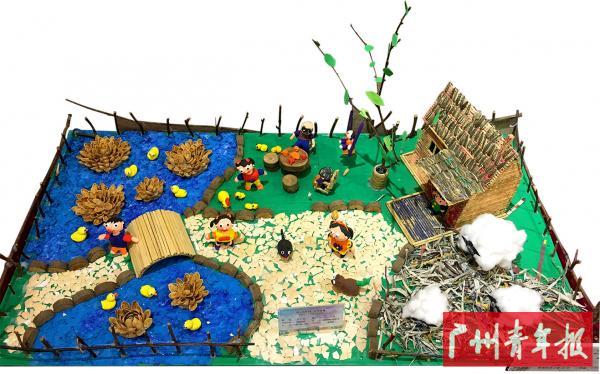 即便是幼儿园的小朋友,他们对核心价值观也有自己独特的理解。增城区喜羊羊幼儿园的师生作品《中国梦》是一艘用硬纸板、橡皮泥等材料制作的龙舟,人们在船上奋力划桨前行,神态栩栩如生,而船桨贴有24字核心价值观,寓意立显。另外,花都区新雅街中心幼儿园的作品《和谐家园》也让观展者交口称赞:“小朋友们利用蛋壳、瓜子壳、开心果壳、枯枝等废旧材料,用橡皮泥雕砌了人与人、人与自然、人与动物的和谐景象,令人眼前一亮。”