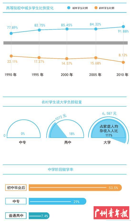 究竟是什么让大部分贫困、农村地区学生放弃高中、大学,可能我们所看到的是辍学的农村学生本身是自己不愿努力学习的“学渣”,但最根深蒂固的原因就是出于读书成本和效益之间的理性分析。今年6月,广东省公办普通高校学费调整正式公布,一下子将学费标准增幅(约17%)提高至20.2%。其中,大学城的几所高水平建设大学中大、华工、暨大、华师、华农、广工在此基础上再上浮10%。消息一出,网友们都感慨道:要是拿不到奖学金估计上不起了、如果没有相对应的学生资助补贴困难学生很可能就此失去学习机会。