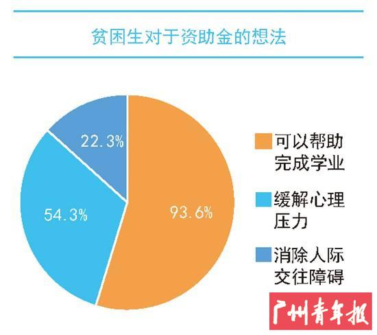虽然贫困大学生面临着很多方面的困难,但国家和学校都会给予一定的资助。我们采访了广东白云学院社会工作专业教师王静,她介绍说:“公办高校对于贫困生有很健全的资助体系,包括‘奖、贷、勤、助、补、免’,如国家助学金的申领、贷款缴学费、勤工助学等,总体上来讲高校的贫困生受资助范围还是比较大的。” 从王老师的调查中发现,贫困生资助措施对贫困生学业和生活有较大帮助。有93.6%贫困生认为如果能重够获得相应物质资助,最要的影响是能够减轻家里的经济负担,帮助完成学业,有54.3%贫困生认为其次影响是缓解因贫困造成的心理压力,再次有22.3%认为是可消除人际交往的障碍。从贫困生访谈中,发现有许多贫困生一方面有自强心理,另一方面由于周围同学的生活方式和消费差距有一定心理压力和自卑感,容易造成人际关系的紧张和心理焦虑,严重者甚至产生纠纷,比如访谈中一大三贫困男生曾一度怀疑宿舍同学嘲笑其土气,而与宿舍同学发生纠纷。可见,资助措施对贫困生的学习、生活、心理等方面的影响较大。