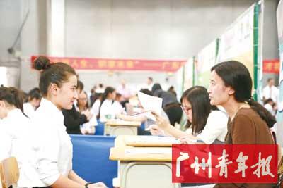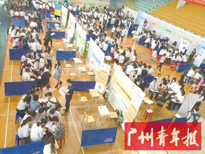 广雅中学首届模拟人才招聘会现场,每个摊位都人头攒动。