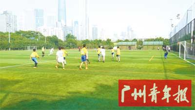 广州大学附属中学大学城校区拥有宽阔平坦的标准11人制足球场,对于许多学校来说这是相当不错的硬件配置,但该校体育科组老师余光辉却一直觉得场地不够用。“这个球场既要用来训练又要比赛,平时参与体育锻炼的学生非常多,同时段还会有接近80人在球场练球。我们学校每周都有球赛,同学们喜欢踢球,让我们既欢喜也担忧(场地不够)。”