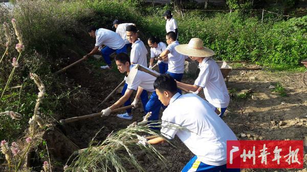 方建泽(广州市美术中学 高一):学农这一周,主要是实践课加理论课的模式,实践课主要是去锄地、种花、割草、挑粪……虽然是干体力活,但老师也会教我们很多技巧。比如锄地时锄头要倾斜45°,利用压强和杠杆原理会更省力。