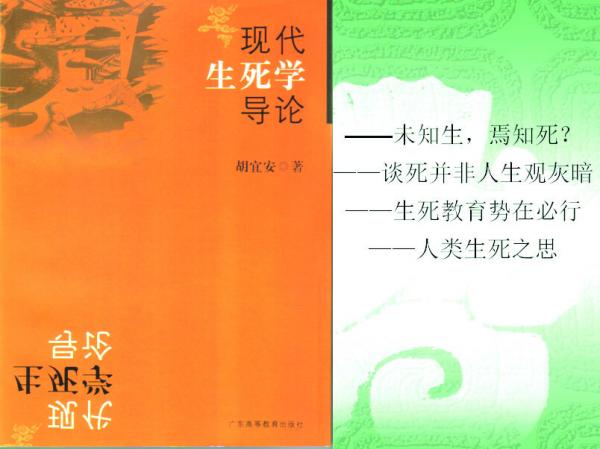 2000年开始,胡宜安教授在广州大学设立生死学课程。据悉,这门课每学期固定8讲,每讲定在每周一或周三晚上。课程内容一般是讲解生死尊严、死亡心理、临终心理、疾病、衰老、灾难、丧亲、战争、饥荒、自杀、丧葬礼俗、慢性自杀、安乐死、器官移植等敏感问题。
