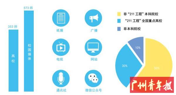 日期:[2016-11-20] 版次:[A05] 版名:[数读]2008年,在团中央、教育部的指导下国内63所重点高校发起成立中国高校传媒联盟,组成了中国高校传媒力量的主力军。目前,中国高校传媒联盟签约理事高校529所,会员媒体近5000家,覆盖高校757所,其中“211工程”高校108所,“985工程”高校38所。