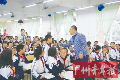 宣讲课中,来自广西百色红色根据地小学的校长在与广州学生进行交流。
