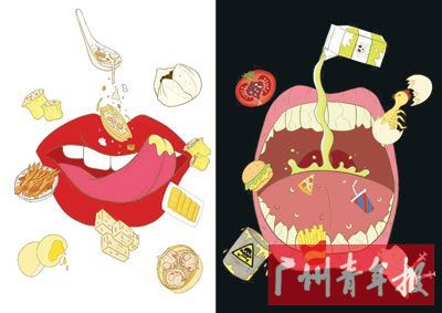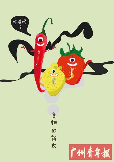 当然,我也会尽力地把美食画得鲜艳诱人,因为食在广州嘛!之所以用“食咩好?”来作为作品标题,是因为平时大家在问“吃什么?”的时候,最常见的回答是“随便啦”!希望能以此表达我对广州食品安全的看法:吃什么都没问题,因为都很安全、放心!