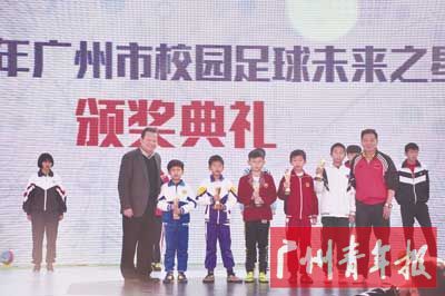当天活动中,33名学生被授予校园足球“未来之星”称号。据了解,这批学生是经各区教育局推选出来的校园足球种子球员,足球运动水平突出,品学兼优。对于种子球员的培养,今年11月,广州市首次组织校园足球交流团赴英国学习训练,番禺区18名初中生赴英超劲旅托特纳姆热刺队青训基地进行8天训练。