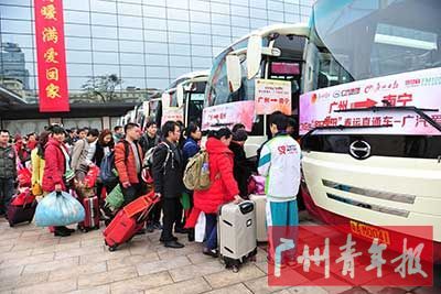 据了解,2017年“冬日暖阳”春运直通车活动主要安排铁路专列及公路大巴两种方式帮助务工人员集中乘车返乡,计划开往湖北武昌、湖南邵阳、贵州贵阳、江西赣州、广西南宁和粤东、粤西和粤北地区等16个省内外返乡热门地区。铁路方面,继续开设“共青团号”爱心专列,携手广东省湖北商会、王老吉开设广州至湖北武昌,携手同程旅游开设广州至湖南邵阳线路,更首设广州南开往贵阳北的动车线路,分别拟于2017年1月13日、15日、16日发车,送在穗就读大学生和来穗务工青年回家。