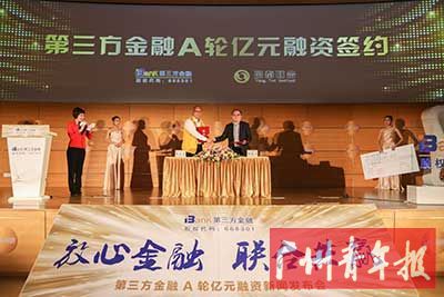 本报讯(记者 周司琪) 12月26日,第三方互联网金融服务有限公司(下称“第三方金融”)在广州举行A轮亿元融资签约新闻发布会,宣布获盈泰联合投资集团的A轮亿元投资,创下了广东省内互金平台A轮融资达亿元的新纪录,同日第三方金融平台还发布了3.0版本新系统。