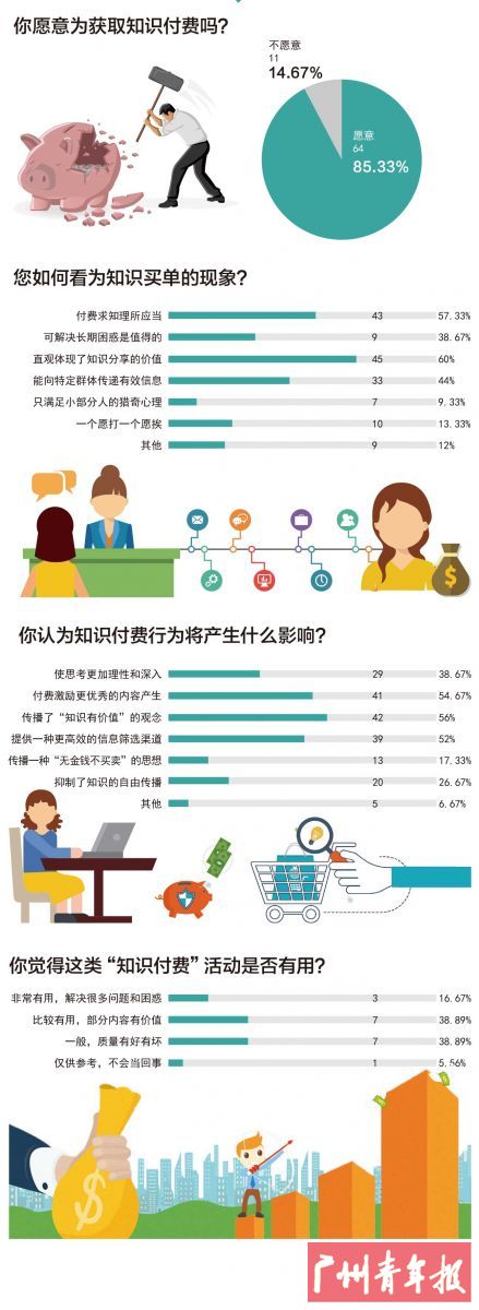 从付费语音问答平台“分答”到实时问答互动的“知乎Live”,过去的一年里,在以“免费”著称的互联网中,“知识付费”突然火了起来。当消费升级到知识领域,你是否愿意为其买单?近日,本报以“你是否愿意为知识付费”为话题发起微调查,了解当下青年对“知识付费”的态度以及改变。