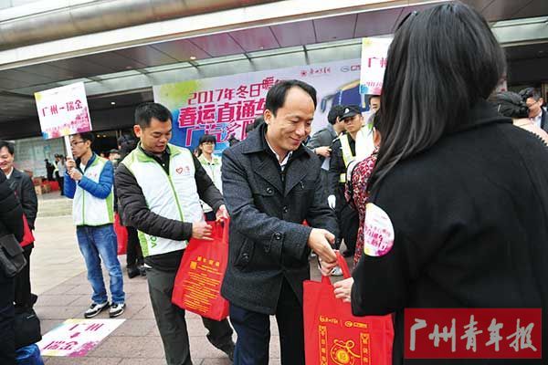据悉,今年已经是团市委举办春运直通车活动的第四年。活动通过在春节前夕开设免费返乡的爱心直通车,为在穗学习、务工的外来人员送去温暖,切实体现出共青团对异地就学、异地务工青年的支持与帮助。与往年不同的是,2017年春运直通车的路线覆盖面更广,增设了开往湖南邵阳、贵州贵阳、江西瑞金和省内潮州等线路,招募人数也比往年多了一倍。