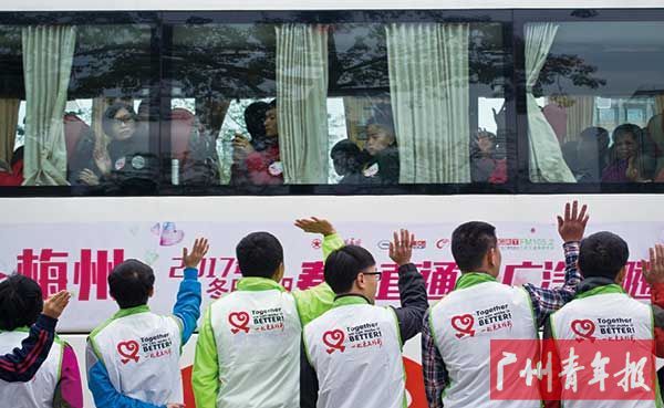 近日,由团广州市委、广州市来穗人员服务管理局、广州市交通委员会、广东广播电视台等单位联合广铁集团、广汽集团、广州交通集团、湖南省驻粤团工委、团邵阳市委、广东省湖北商会、贵州省青基会、同程旅游、广州王老吉大健康产业有限公司主办的2017“冬日暖阳”春运直通车活动落下帷幕。16条返乡线路、3趟爱心专列、15辆爱心包车、逾4200名乘客满意的笑脸为活动划上了圆满的句号。