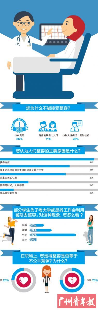 在采访过程中,有被访者对记者说起自己的观点,在他看来整容跟读书一样,一个改变内在,一个改变外在。“你有条件读书,提升了内在,大家赞扬你。你有钱整容,提升外在,批评你的人其实是站不住脚的。”冰山先生(化名)说道,在他看来看,整容上培训班一样,就是花钱给自己充电。“在能力范围内改变一些先天不足的东西,这并没有什么问题。”