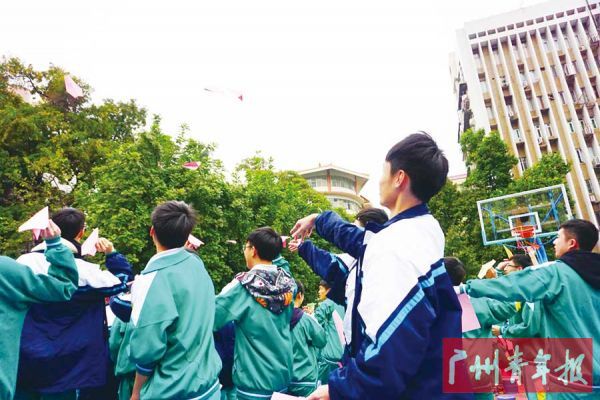 “人人重本,海珠最强!我们会用健康的体魄,用坚韧的毅力,用顽强的斗志,去创造一个美好的未来!”2月27日,在广州市南武中学的“2017届高三百日誓师暨一模动员大会”上,高三全体同学紧握左拳,喊出自创的口号,寄托心中志向,场面令人热血沸腾。在活动的最后,随着校长一声号令,同学们一起放飞写有梦想的纸飞机。