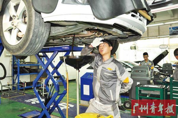 看着学生们迅速、规范地检修汽车,校长刘建平则留意到他们操作中的一些细节:“更换机油时将废机油放在规定的位置统一回收;地上有水迹油渍要主动清洁;产生的废气统一回收排放……从关注维修环境,到重视维修后产品的整体环境舒适度和客户满意度,再到处理维修废气保护环境,我们希望同学们对环境安全有更深入的理解,才能担负起客户交予的信任。”