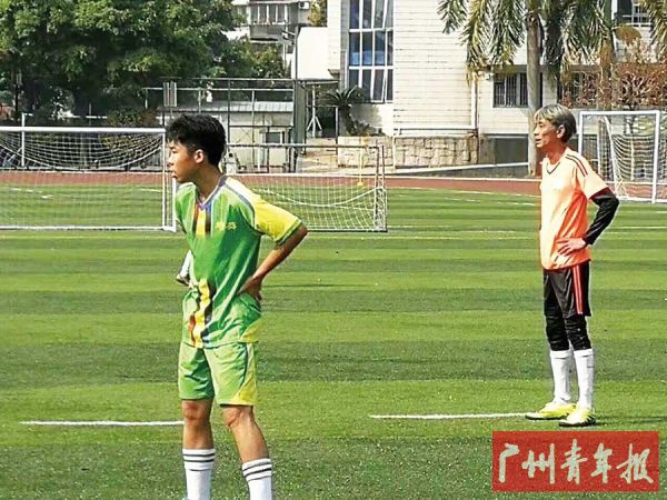 校园足球队指导老师何建荣也是培英中学的校友,他熟悉学校校园足球的辉煌历史,更了解现在球队的情况。目前校内男子足球队40余人,大多数是高中阶段才开始接受系统训练。由于高中生的骨骼结构已基本定型,所以要通过恶补基本功,从而期待踢出好脚法的做法并不现实。怎么办?这时,球员们的反馈给了何老师灵感:“在一场球赛后,同学们会主动和我沟通,聊到如何站位才能更好地与队友配合的问题,我发现,他们虽然基础弱,但他们肯思考。全局意识是每个球员的宝贵财富,我就抓住他们这一点,多提升他们的全局意识,激发他们的创造力。”