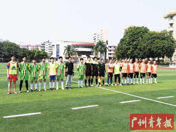 近日,广州市培英中学的足球场上迎来了一场特别的球赛:广州市培英中学(以下简称“培英”)高一级男子足球队与培英校友足球俱乐部82届校友展开了一场精彩的友谊赛,校友们额间已有少许白发,但他们好像回到了少年时代的状态,连连进攻;高一级队员大多接触足球训练时间不长,与见过省赛、市赛“大场面”的校友们交锋,难免有些紧张。最终,校友队在这场球赛中获胜。