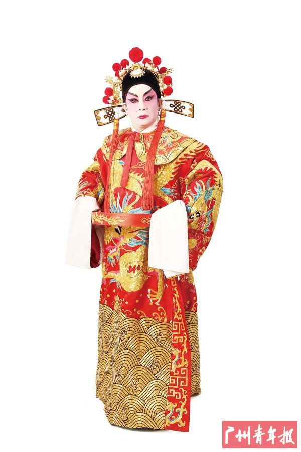 如粤剧剧目《帝女花》中,驸马周世显就是身穿红色男蟒,头戴“驸马卡”,腰间的玉带作装饰,尤显威武。
