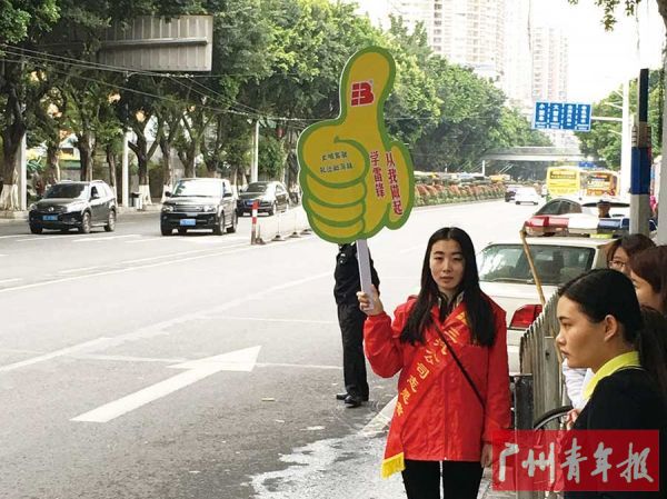 活动当天,三汽公司一班青年志愿者们身穿红色风衣和志愿者马甲,手持绘有点赞大拇指的指示牌在中山八路、广卫路、广仁路等路口,吸引了过往行人和驾驶员的眼球。志愿者们配合着红绿灯的转换,向过往机动车打手势示意在斑马线前停车,待行人通过时,他们又熟练地变换手势,向遵章通行的驾驶员竖起了大拇指。当发现有横穿马路、闯红灯、行人过斑马线车辆不慢行等不文明现象时,志愿者们就会挥动手臂提醒他们减速慢行,并及时劝导、纠正不礼让行为。