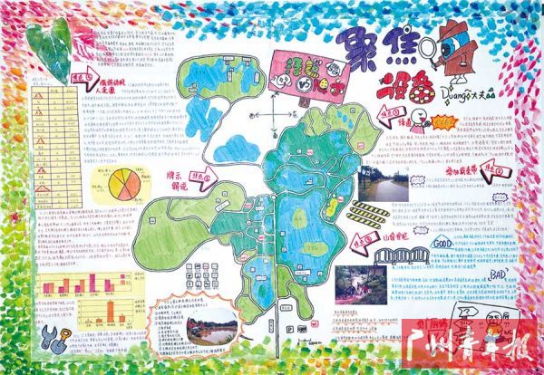 在普通的地图上,我们可以清楚地看到街道的空间分布,但很难全面了解地区的生态和人文景观。广州市第九十七中学生态委员会的同学手绘“绿地图”,利用一套世界通用的图示方法,则可以做到这一点。