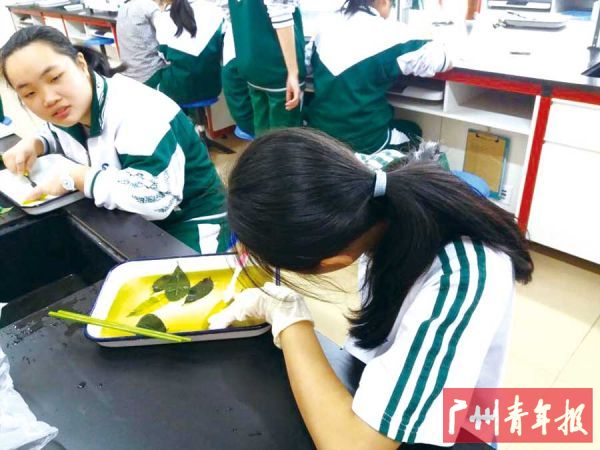 在学校科艺节上,生态委员会成员教同学们制作叶脉书签。“在此之前,我们没有制作过叶脉书签,在网络上只搜到笼统的做法。我们每天沿路捡拾树叶,几乎用光了学校实验室库存的氢氧化钠,将家里的锅煮得污迹斑斑,摸索了一个多月才制作出第一批成品。后来,在科艺节上,其他同学纷纷来‘拜师’学艺,看到大家都制作出了好看的叶脉书签,我们都特别开心。”活动专项部部长张悦泓说。