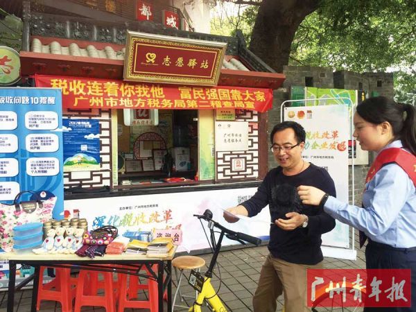 今年4月是全国第26个税收宣传月,由广州市地方税务局主办的“深化税收改革,助力企业发展”主题税法宣传活动已正式拉开帷幕。4月15日起,广州地税纳税服务志愿者队伍入驻“西关小屋”志愿驿站,依托分布在团一大、海珠广场、正佳广场、白云山、花城广场等社区、旅游景点、经济商业圈、文化活动广场的45个志愿驿站,为周边企业、社区居民及过往游客提供税法宣传、政策解读、涉税(费)咨询、办税体验等志愿服务。