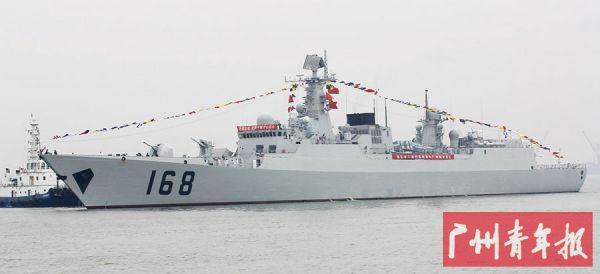 据悉,“广州舰”由我国自行设计制造,于2002年5月下水,2004年9月入列,舷号为168。该舰全长160米,宽18米,高度35米,标准排水量为6000吨,最大航速为30节,续航力达4000海里。