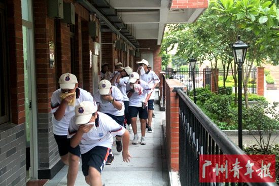 广州外国语学校的“开学第一课”举行了宿舍区消防演练:全体学生以1分19秒的速度快步下楼,共使用了3分19秒安全撤离宿舍区。