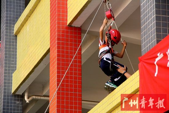 “安全绳绑在肚子上,慢慢地从2楼下来,感觉挺OK!”白云区永泰小学闵先德同学用49秒第一次尝试了“火灾现场”高空逃生的情景模拟。开学日当天,该校同学分年级体验穿越烟道、互助包扎、穿越火门等安全项目,家长们也参与学习心肺复苏术。