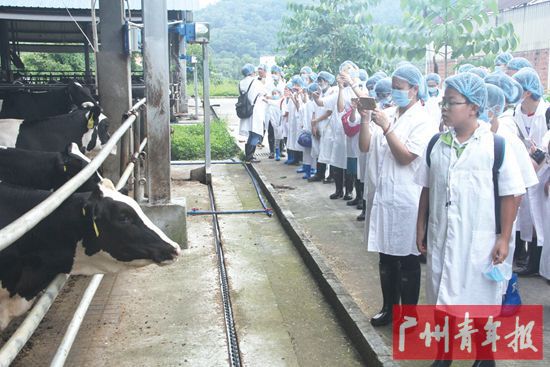 7月13日,广州学通社组织80多名校园记者前往位于增城区仙村镇的风行牛奶仙泉湖牧场参观、采访。在烈士陵园门外集合后,我们浩浩荡荡地出发了,一路上,大家满心期待:仙泉湖牧场究竟长什么样?牧场工人是怎么给奶牛挤奶的?我们都想要一探究竟。