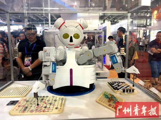 走进“天翼智能生态博览会”,科技创新发明让我们耳目一新。面对据说可以“凭双拳击败4人”的智能博弈机器人,大家跃跃欲试,都想跟它切磋棋艺。但机器人高超的博弈系统让自信满满的挑战者有些紧张,只见它的两条机械臂在玻璃罩里灵活摆动,机械臂前端的吸盘有条不紊地从小洞里取出棋子,然后准确地摆放在棋盘中。机器人面对4个棋局,两支机械臂同时博弈,严密的构造让来宾们叹为观止。