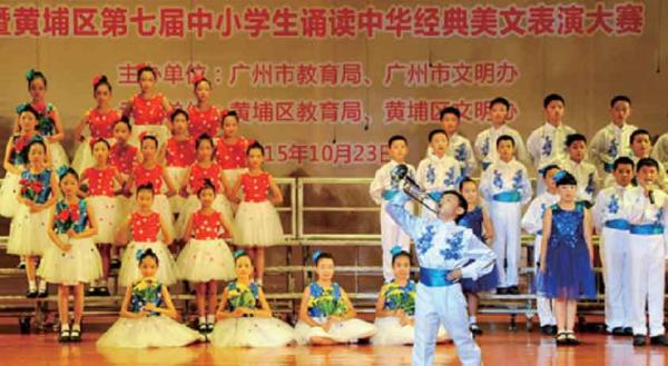 近年来,广州市及黄埔区各中小学校高度重视弘扬中华民族传统文化,大力推进传统文化和社会主义核心价值观教育,引导学生树立积极的人生观、价值观和世界观。本次展演活动以传统节日“重阳”为主题,给学生提供展现自我的舞台,他们用饱含深情的经典诗文,或表达节日的思乡念亲之情,或赞颂伟大祖国的壮丽河山,或歌颂中华民族几千年来的辉煌历程,特别是改革开放以来祖国发生的翻天覆地的变化,更表达出了他们对祖国对民族的深情厚爱。
