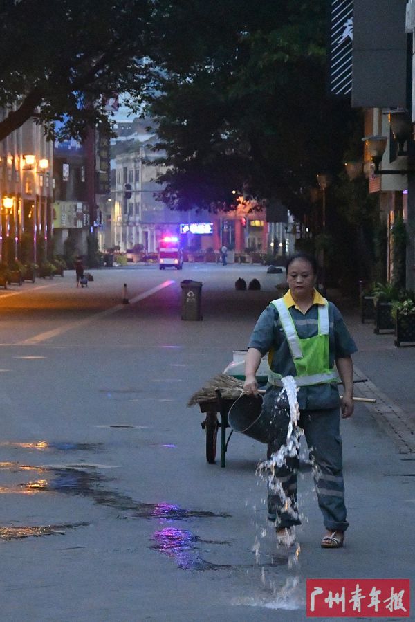 潘姐是一位普普通通的环卫工人,无论酷暑寒冬、刮风下雨,她每天清晨5点、都准时对路面进行保洁工作,他和工友三班倒清扫北京路路面。