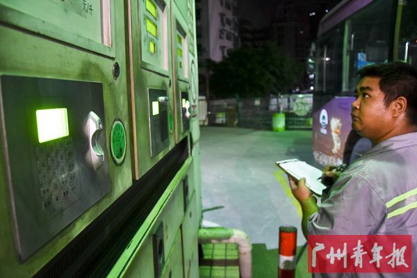 滘口加油站的员工每天夜晚11点上班,工作到早上8点才结束,他们每天为日夜兼程的驾驶员提供加油服务。