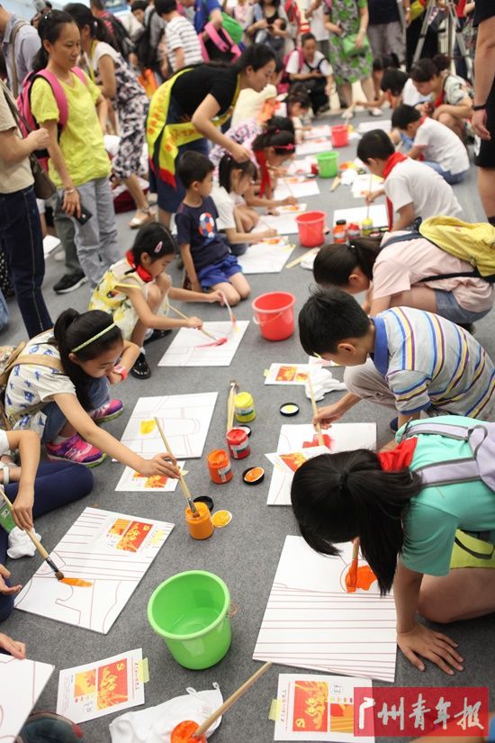 ☆广州青少年用画笔挥毫,手绘党旗,为党庆生,喜迎十九大。