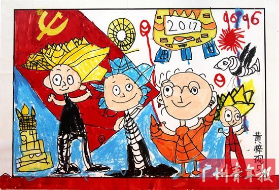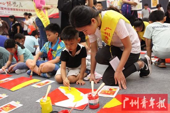 据了解,本次活动由广州市政协办公厅、共青团广州市委员会、广州市少工委主办,广州市青年文化宫、广州图书馆、广州市阳光知行青少年活动中心承办,上海富乐梦新潮文化用品有限公司、广州嘉纯梓贸易有限公司协办,是《红旗飘飘巡展》系列活动之一。活动是为庆祝中国共产党成立96周年,迎接党的十九大的召开而举办的,旨在通过寓教于艺术创作的方式,让青少年在绘画中深入了解党史,认识党旗的内涵。手绘党旗征集活动自今年6月初面向广州、佛山、汕头等地中小学生以及青少年机构、校外美术机构的学员开展,历时20天,共征集1000多幅绘画作品。青少年美术爱好者通过水彩画、素描、漫画、拼贴画等形式多样的艺术手法手绘党旗,作品内容丰富、主题突出,且颇具深意,反映了青少年不忘初心跟党走的决心和信念。