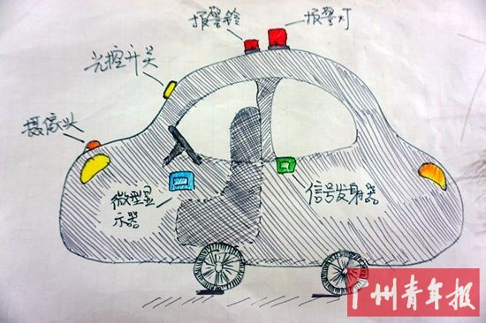设计者说:对于报警系统,我们制作了3个迭代版本。第一代遇到违规来车时,手动打开延时开关;第二代采用光控延时开关,即时启动报警铃和报警灯,并进行录像;第三代分开报警铃和报警灯的警示,流程更加精细。使用光控延时开关,是我们至关重要的技术突破。为了改进设计,我们来到白云交通大队石井中队和石井街道,演示我们制作的第一代产品,叔叔阿姨们给我们提出了许多宝贵的建议,回来仔细查阅资料,才形成了第二代、第三代系统。