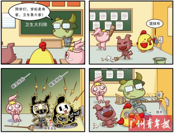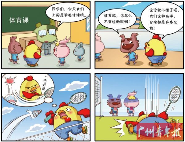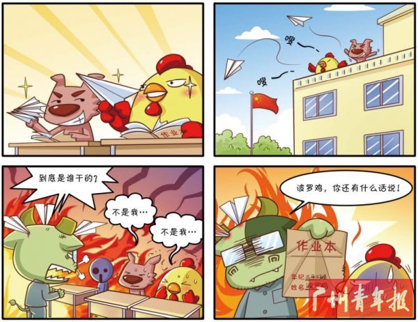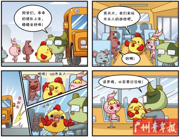 日期:[2017-09-17] 版次:[08] 版名:[漫话安全]“创建安全校园,你我有责!”新学期开学了,我们又开始了充实又忙碌的校园生活。虽说从家里到学校,每天“两点一线”,但要留心的安全问题还真不少。瞧,“波罗鸡”又出动了,它要为大家创建安全校园“支招”!
