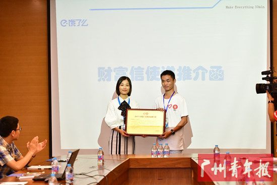 财富志愿信使、广州市电子信息学校游宇轩给“饿了么”网上订餐联合创始人兼CEO张旭豪写了一封推介广州的信。信中,他向张旭豪介绍了广州缤纷多样的美食和紧张快捷的生活节奏。他幽默地介绍广州人热爱美食的天性:“俗话说‘美在花城,食在广州’,我们对食材取材广泛,可以这样形容‘天上飞的,除了飞机不吃;长四条腿的,除了桌子不吃。’”在他看来,“饿了么”是张旭豪给广州送来的真诚礼物,它改变了餐饮的模式,赠予生活在广州、生活节奏较快的人们新的饮食习惯。