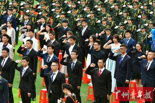 10月18日是第24个“广州成人宣誓日”。10月17日,由团市委、市委宣传部、市教育局、市人社局、广州日报社、广州市广播电视台共同主办的2017年“18岁青春季”广州市成人宣誓仪式在广州大学附属中学(大学城校区)举行。780余名18岁青年在领誓代表的带领下,面向国旗庄严宣誓,并向前来观礼的父母和师长行感恩礼,感谢祖国的培养、社会的关爱、师长的教导和家庭的支持。