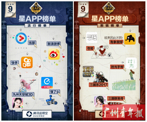 应用宝星APP 9月榜发布 用户需求再次转向娱乐消遣
