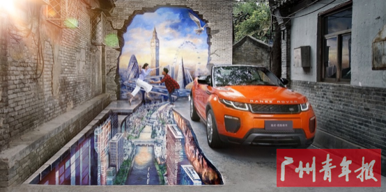 如何令一个寻常的胡同展现新潮风采?3D地画大师以绘画错觉手法,将英国时尚之都带至北京的一个犄角旮旯,赋予古朴街道一种潮酷气息。当你跟随路虎揽胜极光的车轮,穿越一条条富有年代感的东方街巷,眼前突然闪现伦敦眼、大本钟、碎片大厦、泰晤士河等英伦时尚景象,这种东西方的穿越之感不能炫酷更多。而高颜值的路虎揽胜极光敞篷版与此番独特景色精妙相融,形成别具一格的画卷。